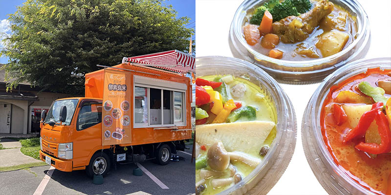その酵素玄米をベースにオリジナルカレー各種や大豆ミートを使用したヘルシーメニュー、具沢山のみそ汁を販売しております。